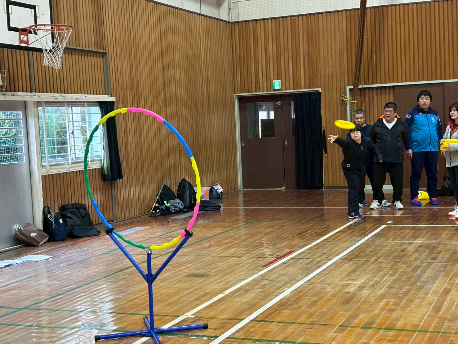 アシスタントコーチに手伝ってもらい、アスリートに役割も持って参加して楽しいプログラムを目標にしています。アキュラシー競技とディスタンス競技を毎回練習して、競技会を目指しています。